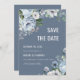 Elegante boda de invierno floral, salvo la tarjeta de fecha, cuenta con elegantes flores de color gris y azul glacial ramo de vegetación en tonos rojizos. Comuníquese conmigo para obtener ayuda sobre la personalización o si necesita cualquier otro producto con este diseño.