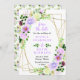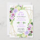 This fun and whimsical save the date invitation features watercolor purple flowers and foliage on a gold geometric frame. The text combines handwritten script and serif fonts for a stylish and modern look. This is perfect for a spring or summer rustic wedding.