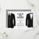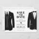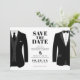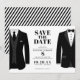 Haga saber a todos que ustedes dos han fijado una fecha para su boda con esta tarjeta moderna de guardar la fecha con dos trajes negros. Personalice agregando sus nombres, fecha y ubicación de la boda.