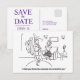 Ilustrado humorístico guardar la fecha, donde el hombre es rechazado por el padre de la mujer.