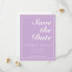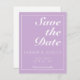 Boda bonito, moderna, minimalista y a la moda Save the Date cuenta con un suave fondo violeta pastel con bloques de texto de personalizable blanco con fuentes modernas. Agregue el código QR de su sitio web boda personalizado en la parte posterior.