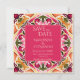 Fuchsia naranja rosa colorido vintage talavera mexicana azulejo azulejo boda guardar la plantilla de invitación de fecha descarga digital instantánea, escritura a mano tipo de letra casual