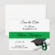 Esta es una variación de la tarjeta Save the Date que creé para una hija de amigos cuando se graduó de la secundaria. Cuenta con un gorro de graduación negro con tassel negro y verde y un diploma, además de colores de diseño coordinados. Siéntase libre de visitar mi tienda aquí en Zazzle para otros productos y diseños, incluyendo accesorios de coordinación y otras opciones de color! ¡Gracias por su interés en SapphireDesigns!