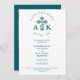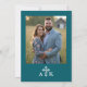 Teal Ornate Christian Cross Minimalist Wedding Save the Date Cards with Initials and Back Photo.