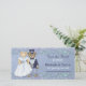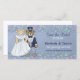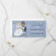 Adorables novios y osos de peluche. Esta pareja guapa está vestida con su ropa boda. Él con su esmoquin y sombrero de punta y ella está en su vestido y velo boda. El bonito fondo azul claro tiene un suave motivo floral con un bonito borde de acento floral. Todo el texto está listo para su personalizar.