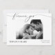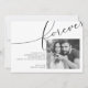 Romántico y tendencioso. Guarda las funciones de la tarjeta de fecha "Forever Yes" (Sí para siempre) en un guión negro suave encima de la imagen y los detalles de su nombre y boda a continuación. En la parte trasera "Forever" está en un guión grande encima de otra foto con texto adicional a la izquierda. *personalizable para satisfacer sus necesidades, cambia la redacción para adaptarla a sus necesidades y puede borrar el texto extra si no es necesario.