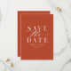 Este audaz pero clásico, guardar el diseño de fecha, presenta un naranja quemado, una paleta de colores de terracota y una moderna opción de código QR para proporcionar su próxima información de boda. Este diseño es totalmente personalizable con el texto y la dirección URL del código QR.