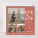 Anuncia tu día especial con estilo con esta tarjeta de save the date de terracota con fase lunar que incluye espacio para tres fotos. Diseñada con una paleta cálida y terrenal, tipografía moderna y acentos celestes de acuarela, este diseño boho es perfecto para bodas en el desierto, temas celestes y parejas que aman una estética romántica y moderna. Personaliza fácilmente las fotos, nombres y fecha para crear un recuerdo que los seres queridos adorarán.
