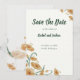 Set the tone for your upcoming wedding with this elegant and romantic Save the Date card. This design features a beautiful arrangement of hand-painted watercolour wildflowers in earthy shades of terracotta, burnt orange, and soft peach, accented by delicate sage green foliage.