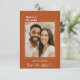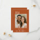 Announce your special day in style with this modern terracotta, burnt orange colored Save the Date card. Featuring your favorite photo framed by a minimalist ivory line border, it perfectly blends timeless elegance with a personal touch. The handwritten script adds a romantic detail, while the clean layout keeps the design contemporary and easy to customize.