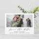 Una hermosa tarjeta de texto de guión de varias fotos elegante boda moderna para guardar la fecha, perfecta para enviar deseos de vacaciones a familiares y amigos. Personalice el color del respaldo para personalizar su tarjeta. Parte de una colección.