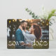 ¡Guarde la fecha! Este diseño de guardar fecha de foto única y elegante presenta un tratamiento de tipo de moda en blanco en la parte inferior de una foto horizontal junto con su texto personalizado. Es una tarjeta perfectamente moderna para anunciar su compromiso y próxima boda. La parte trasera es de un clásico color gris claro con una segunda foto junto con espacio para un mensaje personalizado que puede incluir detalles del fin de semana de la boda y un código QR para el sitio web de su boda. Este original guardar fecha de Lea Delaveris Design es parte de una colección donde puede encontrar más colores y estilos. También está disponible como descarga digital de guardar fecha.