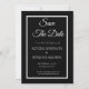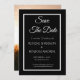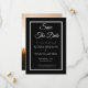 Anuncia tu boda con elegancia atemporal usando esta tarjeta de Save the Date negra. La parte frontal presenta tipografía limpia y refinada para un look clásico y moderno, mientras que la parte trasera es totalmente personalizable con la foto de tu pareja favorita. Una opción perfecta para temas de boda formales, minimalistas o de lujo.