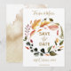La temporada de otoño florece en un diseño de acuarela pintado a mano, tarjeta de guardar la fecha. Perfecto para cualquier evento de boda de otoño rústico. Fácilmente personalizable insertando su información personal para hacerlo suyo. Consulte nuestra tienda para productos coincidentes.