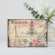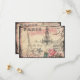 Tarjetas planas de "Save the Date" de boda parisina vintage elegantes de la Torre Eiffel francesa, en rosa y negro glamurosos con un hermoso collage impreso shabby chic de rosas rosadas románticas, araña antigua elegante francesa, el Arco de Triunfo, la Torre Eiffel y la palabra París en un bonito fondo de grunge con florituras y floreos ornamentados. En el reverso de estas invitaciones modernas y de moda hay un fieltro de encaje vintage impreso y perlas para que lo personalices. Todo el texto se puede personalizar fácilmente para satisfacer tus necesidades y puedes cambiar el estilo de fuente, el color y el tamaño de la fuente si lo deseas. Si necesitas ayuda para personalizar tu producto, por favor contáctame a través de mi tienda y estaré encantado de ayudarte. Fieltro de perlas por Hazel Kinvig-Paul www.design-a-d