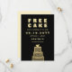 Una tarjeta de "TARTA GRATIS Y UNA BODA DE REGALO" de boda moderna, divertida y aguda para ahorrar la fecha y hacer reír a tus invitados. El diseño presenta tipografía moderna y una ilustración de pastel adorable en lámina de oro falsa sobre un fondo negro. En el reverso de la postal, el diseño ofrece opciones para más detalles. Personaliza el diseño reemplazando el texto con tus datos. Por favor, contacta con el diseñador para cualquier solicitud de personalización del diseño.