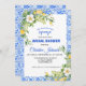 Ella Encontró Su Media Naranja La temática de celebración de boda de limón es ideal para una boda de verano. Las frutas cítricas, que son refrescantes y frescas, siempre hacen hermosas exhibiciones y refrigerios. La colección Lemons de Jenny combina limones pintados con estilo con baldosas azules mediterráneas. Las baldosas en este diseño forman un marco azul. Está elevado por un delgado marco dorado.