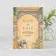 Amaze your guests with this elegant south Indian theme wedding save the date featuring beautiful traditional columns and vintage architectural elements decorated with marigold flowers and banana leaves. Simply add your event details on this easy-to-use template and adorn this card with your favorite photo to make it a one-of-a-kind save the date card.