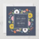 Inspirada en paquetes de semillas de flores, esta tarjeta de save the date presenta un borde de flores mixtas dibujadas a mano.
