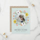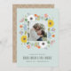 Inspirada en paquetes de semillas de flores, esta tarjeta de save the date presenta un borde de flores mixtas dibujadas a mano.