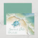 Anuncia que estás comprometido con mis invitaciones tropicales de "Save the Date" que presentan "Save Our Date" en un estilo de tipografía de letra script de moda que evoca la apariencia de letras a mano. Esta simple tarjeta está diseñada con mi tortuga marina original de acuarela y la orilla de las olas del océano, personalizada con sus nombres, fecha de la boda y ubicación de la boda. Las tarjetas se revierten a un color verde turquesa sólido complementario, creando una presentación cohesiva y elegante.