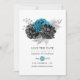 Tarjeta de aviso de boda con flores de purpurina falsas de turquesa rústica (verde azulado), negra y plateada personalizable según los detalles de su evento.