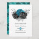 Tarjeta de aviso de boda con flores de brillo falsas turquesa rústico (azul verdoso), negro y plateado personalizable a los detalles de su evento.