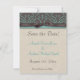 Elegante guardar el anuncio de fecha en la huella de damasco marrón chocolate y turquesa con satén falso luce cinta marrón y arco Fácil de personalizar con tu texto y elección de acabado de papel. Viene completo con sobres.