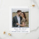 Design features the photo you provide as main design displayed against a white background and framed by an elegant, navy-blue colored border. Just below photo, your text containing heading, names and city & state of wedding are displayed in a matching navy-blue font.