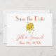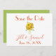 Un hermoso jarrón lleno de girasoles, esto permite que la fecha tenga un fondo blanco. El texto es naranja y la parte posterior es verde claro. Diseño de invitaciones: Bodas de arte Floral de Rhoadie: AMBilustraciones http://www.etsy.com/shop/AMBillustrations/