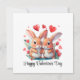 Un par de divertidos conejos acuarelas rodeados de flores y corazones. Un maravilloso regalo El día de San Valentín para una pareja enamorada. La inscripción en el producto: Feliz Día de San Valentín