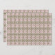 El diseño muestra un patrón con diseños geométricos y florales repetidos. Presenta formas como diamantes y círculos, así como adornos florales y de hojas. Los colores son rosa, marrón, blanco y verde. Este tipo de diseño se utiliza a menudo en tejidos o tapicerías con fines decorativos.