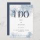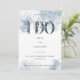 Un diseño elegante de letras artísticas decoradas con hojas y flores en azul para I Do, con un lavado de color azul pálido y salpicaduras doradas que bordean los bordes superior e inferior. El resto del texto se puede personalizar fácilmente y los colores cambiarán si lo desea, al igual que el color del fondo azul oscuro de coordinación está en la parte posterior.
