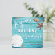 Tarjetas de felicitación de vacaciones de negocios junto al mar. El estilo de madera azul marino con una dispersión de conchas marinas tropicales populares en tarjetas modernas, cuadradas y planas. El texto en blanco y marrón oscuro es fácil de cambiar y personalizar con un mensaje de agradecimiento a los clientes / clientes. (El correo es más caro para las tarjetas cuadradas.)