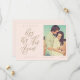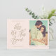 A veces las cosas cambian. Actualiza a tus invitados de boda con tu nueva fecha de boda con nuestra tarjeta moderna de guardar la fecha. El diseño presenta un diseño simple y moderno con "Vamos a intentar esto de nuevo" mostrado en caligrafía moderna. Simple fondo rosa con el nombre de la pareja, fecha de la boda, ubicación y foto.