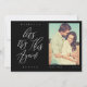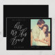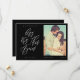 A veces las cosas cambian. Actualice a sus invitados de boda con su nueva fecha de boda con nuestra tarjeta moderna de guardar la fecha. El diseño presenta una distribución simple y moderna con "Vamos a intentarlo de nuevo" mostrado en caligrafía moderna. Fondo negro simple con el nombre de la pareja, fecha de la boda, ubicación y foto.