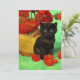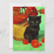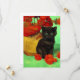 Tarjeta con un gatito negro al estilo de Van Gogh! Un bonito gatito se sienta al lado de un jarrón con flores rojas. La pared verde y el suelo crean un ambiente primaveral. ¡Un regalo fantástico para los amantes del gato y para los coleccionistas holandeses de arte!
