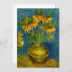Tarjeta con el aceite de Vincent van Gogh y los fritillarios imperiales en una vara de cobre (1887). Hermosas flores amarillas adornan un jarrón con un fondo azul. ¡Un regalo fabuloso para los aficionados al post-impresionismo y al arte holandés!