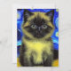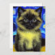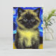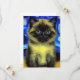 Tarjeta con un gato siamés en la pintura Starry Night de Van Gogh. Esta belleza esponjosa posa frente a un cielo azul nocturno con luna brillante y estrellas. ¡Un regalo acogedor para los amantes del gato y de los coleccionistas holandeses de arte!