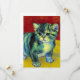 Tarjeta con un gato en forma de tabby al estilo de Van Gogh! Este gatito dulce se posa adorablemente sobre un parqué de madera contra paredes rojas y una ventana. ¡Un regalo increíble para los amantes del gato y para los coleccionistas holandeses de arte!