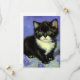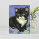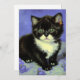 Tarjeta con un gatito de esmoquin al estilo de Vincent van Gogh! Este gatito de bonito posa con flores moradas. ¡Un regalo magnífico para los amantes del gato y para los coleccionistas holandeses de arte!