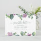 La escritura moderna de escritura floral y púrpura de eucaliptos salvará la tarjeta de anuncio de fecha para que su familia y amigos conozcan sus emocionantes noticias. Personalizar fácilmente esta tarjeta botánica de vegetación haciendo clic en el botón "Personalizar" de arriba. CONSEJO: La suite de invitados a la boda también está disponible en nuestra tienda en la colección de abajo. Encuentra tus artículos para los días previos al boda como la invitación a la boda, rsvp, alojamiento, información del sitio web y artículos para el boda incluyendo pero sin limitarse a los conjuntos de velas de Unity, placas y más