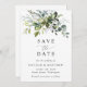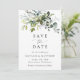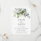 Invite a amigos y familiares con estilo y establezca el tono de su día especial con este encantador y ahorre la tarjeta de fecha. El diseño presenta hojas de eucalipto y vegetación sobre fondo blanco.