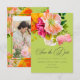 Set the tone for a joyful celebration with this vibrant summer floral photo save the date card design. Boasting yellow, orange, and pink ranunculus and lilies on a bright, lime green background, it is ideal for a garden ceremony. Your favorite photo is framed in vibrant florals on the back. This bright, modern aesthetic offers a high-end look that promises a day filled with sunshine and love. Created by Simply Farmhouse Press.