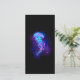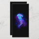 Gran medusa azul, de dibujo artístico, brillante y brillante, con largos tentáculos sobre fondo negro con bioluminiscencia violeta. Luminosas medusas.