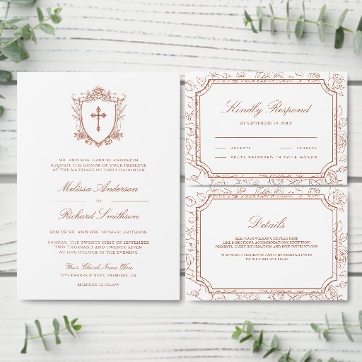 Reserva La Fecha Victorian White and Terracotta Catholic Wedding