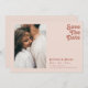 Las simples vigas retro | foto rosa de color rosa azul horizontal guardar la fecha es perfecta para su boda de tonalidades de tierra vintage clásicas. El diseño presenta una minimalista fuente hippie rústica tipo boho. La paleta de colores neutros del desierto del suroeste y las letras bohemias de mediados de siglo se combinan para un diseño perfecto y minimalista moderno de destino occidental. No dudes en cambiar el color y añadir tu propia obra de arte, gráficos o fotos. Si tiene alguna pregunta sobre el diseño de este producto, por favor, no dude en ponerse en contacto con nosotros.