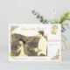 La parte frontal del diseño muestra la foto que proporciona como imagen principal con la fecha que se muestra a continuación de dos maneras. Una hermosa imagen de Nuestra Señora de Fátima aparece en la parte superior derecha y bordeada por la imagen de delicadas rosas rosas rosas rosas y blancas. La imagen de los anillos de boda dorados unidos se muestra en la esquina inferior izquierda de la foto. El encabezado del personalizable aparece en la parte superior con un elegante tipo de letra Nuptial. Bordeando las esquinas superior izquierda e inferior derecha están las imágenes de rosas y vegetación. Los nombres de Bride & Groom se muestran justo debajo de la foto en el mismo tipo de letra Nuptial. De acuerdo con el formato tradicional de la tarjeta Save the Date, el nombre de la ciudad y el estado de boda también aparecen en la parte inferior. La imagen de dos pequeños rosas se muestra al revés. Diseñado para coordinar con la "Virgin Mary Sepia Catholic Boda Suite". Todas las imágenes distintas a las de los anillos bodas se muestran en color Sepia.