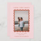 Una boda a la moda salva la invitación de citas con tu foto favorita en un marco de vieira ondulado de terracota sobre un fondo rosa y un texto de terracota. Agregue el sitio web de su boda y el código QR al reverso.