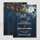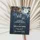 An elegant Wedding Anniversary Save the Date Card with elegant calligraphy completed by wonderful blue wood, garden string lights and white blue floral with gold glitter. You can personalize this card with your pre-Wedding Anniversary details.